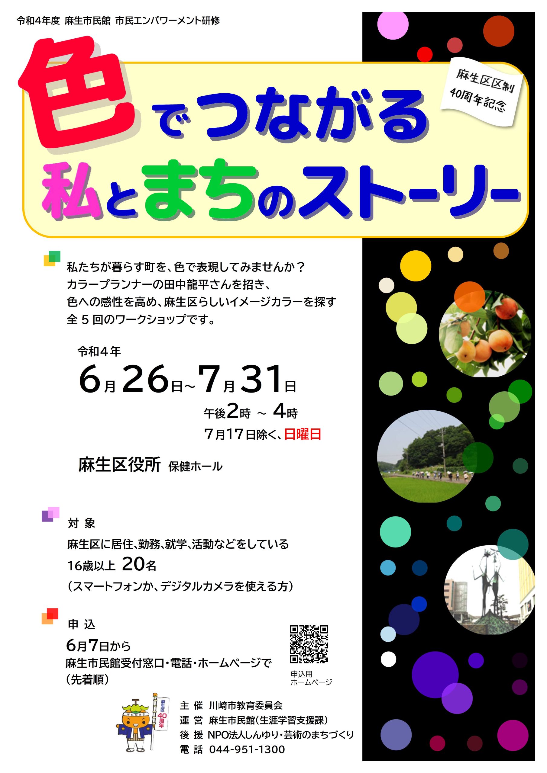 「かわさき折り紙」の企画などを手掛けた、カラープランナーの田中龍平さんを招き、色への感性を高め、麻生区らしいイメージカラーを探すワークショップです。
